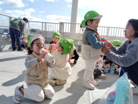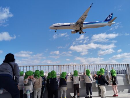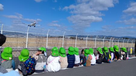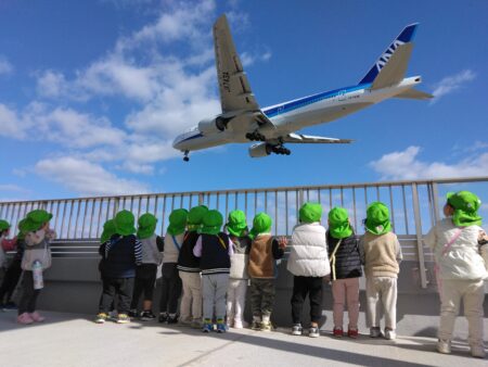 「もっと近くで飛行機をみてみよう!」と保育者が伝えると、