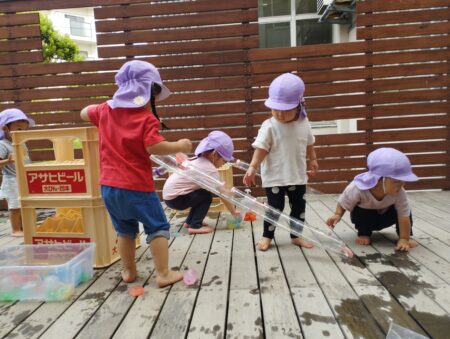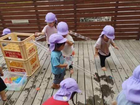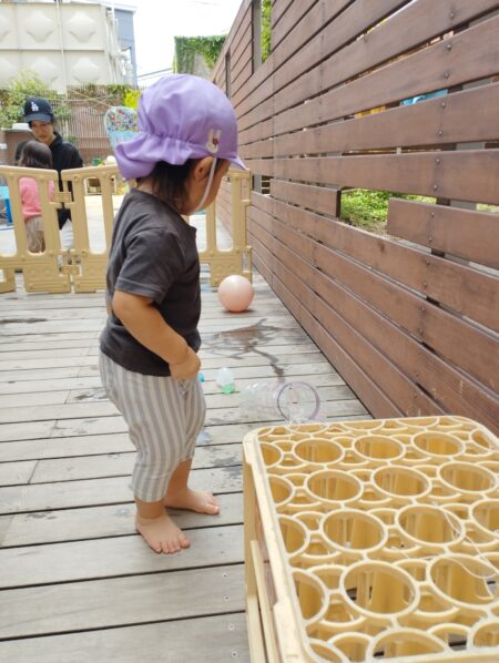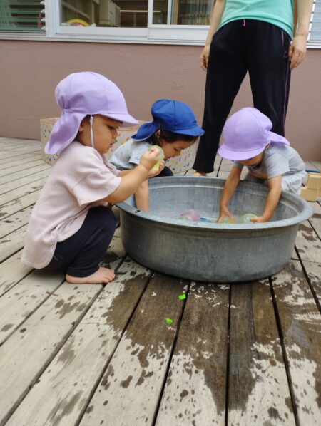 水風船はぐっと握って割ったり感触を楽しんだりしていました。