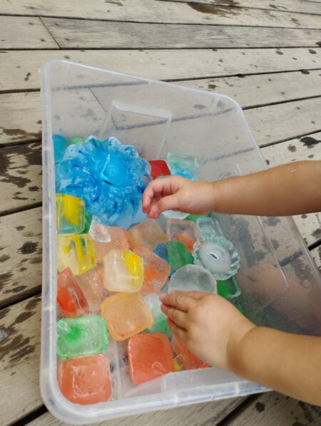 本日は色を付けた様々な形の氷を沢山用意しました。