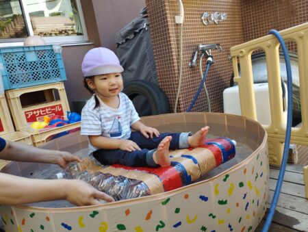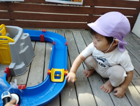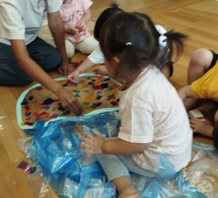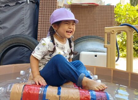 TOP > お知らせ > つぼみ組万博の開幕です! News お知らせ つぼみ組万博の開幕です! 本日よりつぼみ組万博が開幕しました。お花紙で開幕をお祝いです ひらひら舞うお花紙がとってもきれい 小さくなった花紙をペットボトルに詰める姿はみんな真剣! これがどうなるのかは後でのお楽しみ… 園庭ではくらげのクララベルがお出迎え くらげも開幕へ向けてみんなで作りました! まずは水路の玩具 ポンプを押すと水が溜まる事を理解したようであそび方が以前と変わりました。 水路で探検をした後は船に乗って出航! プカプカと浮かぶ雰囲気を味わっていました。 2025.09.19