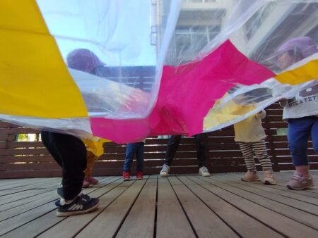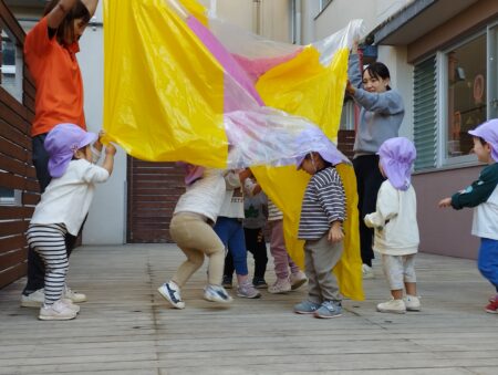 ぽっかぽかフェスティバルでかえで組さんのパラバルーンあそびを見ました。