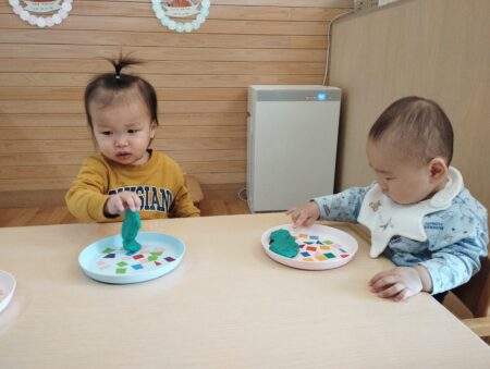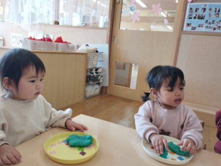 初めての寒天粘土は、みんなでいっしょに触ってみました。