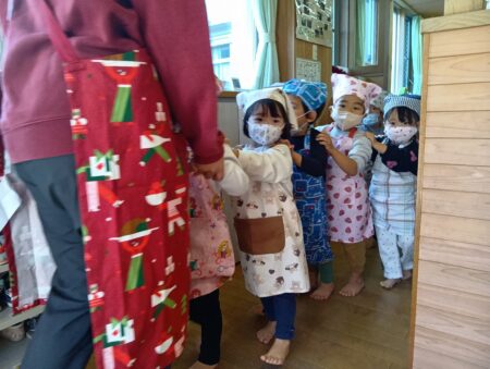 この日をを楽しみにしていた子どもたちは、エプロンを身に着けると順番を今か今かと待っていました。