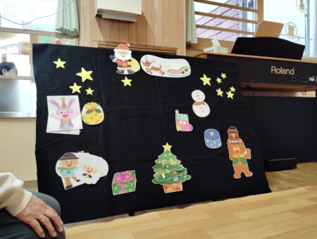ボールあそびが終わったら、クリスマスのパネルシアターを見ました!