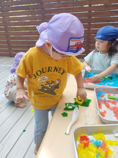 様々なあそび方を楽しみ最後は両手でぐちゃっと潰しました。