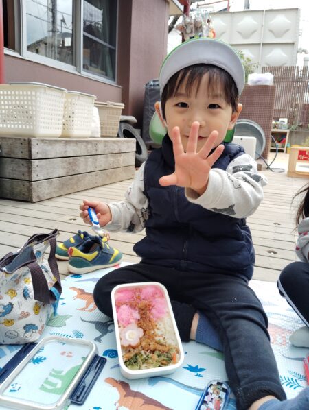 TOP > お知らせ > 最後のお弁当日 かえで組 News お知らせ 最後のお弁当日 かえで組 かえで組、最後の弁当日! 前日から、何を入れて欲しい、どの弁当箱が良いと伝えている子どもたちでした! 当日の朝、「ママが作ってくれたの!」「パパが作ったよ」と嬉しそうに伝えています。 最後なので、園庭で輪になってみんなで食べました。 「これおいしい!」 「これはなんだろう」 「とまとじゃない?」 「いちごだ!うれしい!」 「おかおになっているよ」 と沢山話しながら食べました! 明日はいよいよ卒園式。 本番が楽しみです♪ 2026.03.13