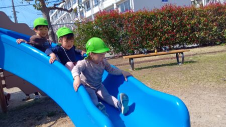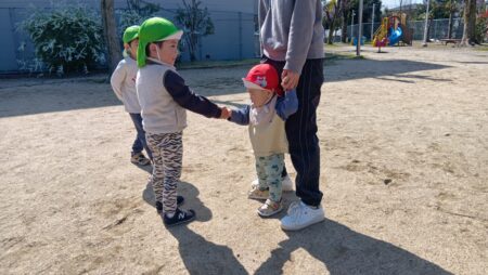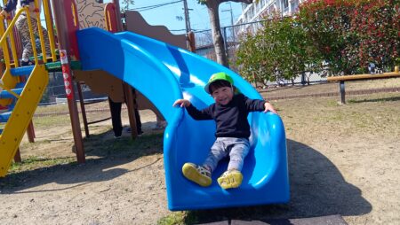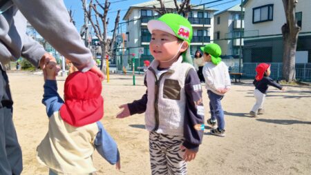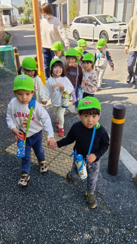 子どもたちのリクエストにより、公園へお散歩に出発。