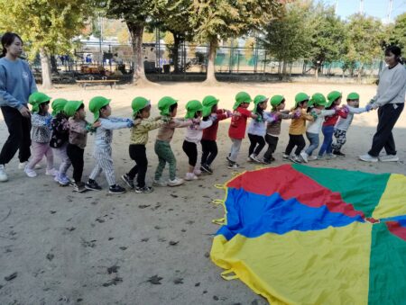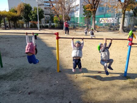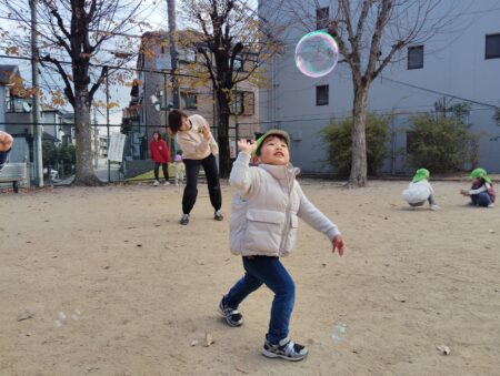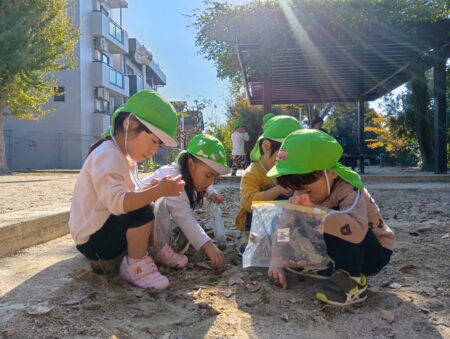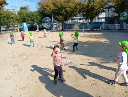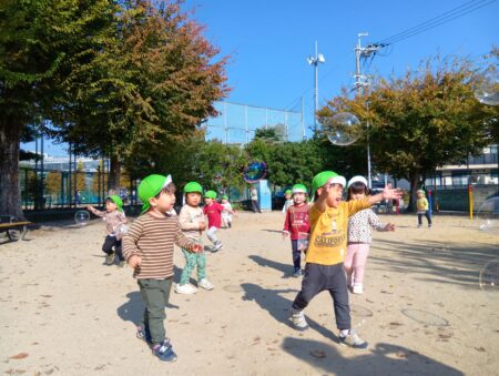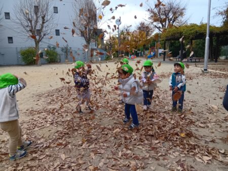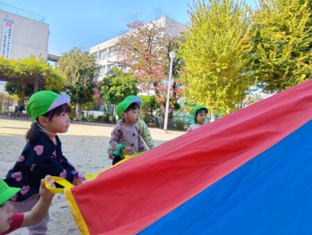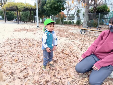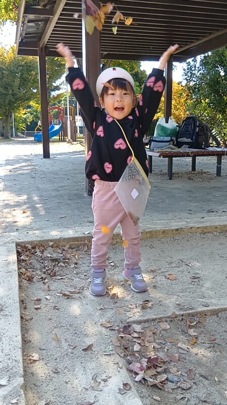 TOP > お知らせ > 秋の公園 かえで組 News お知らせ 秋の公園 かえで組 子どもたちも晴れていると 「きょう、公園にいきたい!」 と伝えてくれます。 251216104118390 期待感を込めて、友だちと手を繋ぎ公園へ向かいます。 ある日は、パラバルーンをしたり しゃぼん玉であそんだり… 様々な事をして秋を感じました。 先週は落ち葉が沢山落ちていたので落ち葉あそびが始まりました。 上から舞い落ちて来る葉っぱに大興奮です。 自然物を集めたり 縄跳びや 鉄棒 また、公園に行って 色々なあそびを楽しもうね! 2025.12.17
