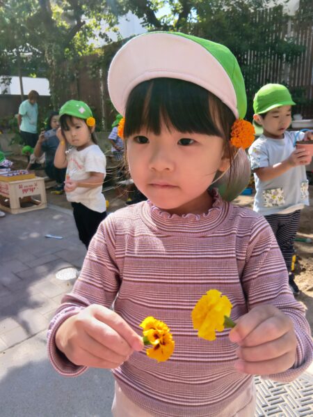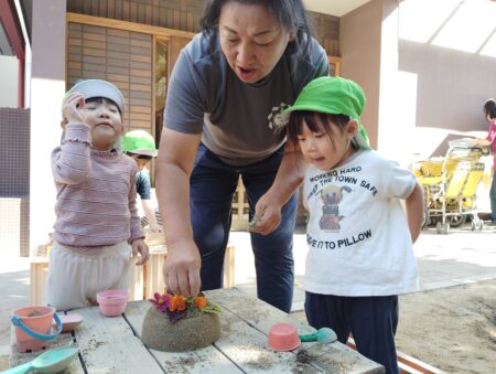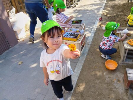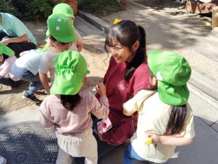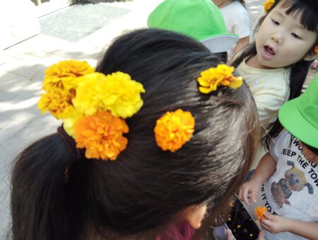 保育者の髪に沢山つけてくれる子どもたちでしたよ♪