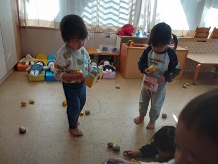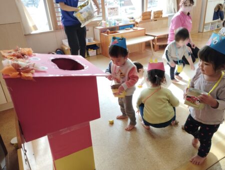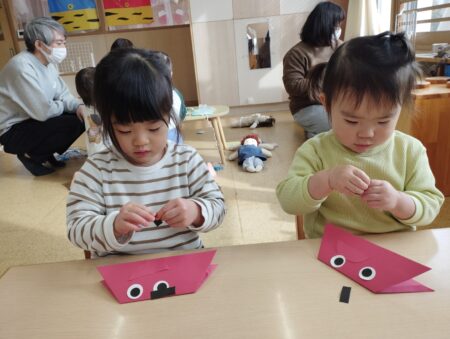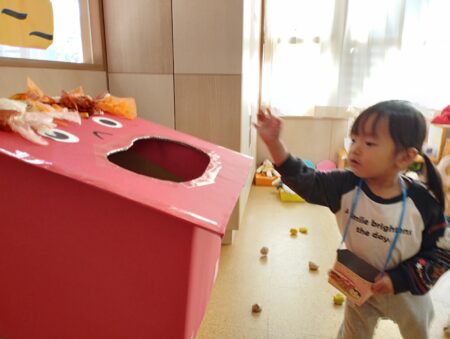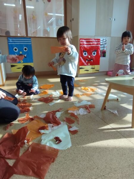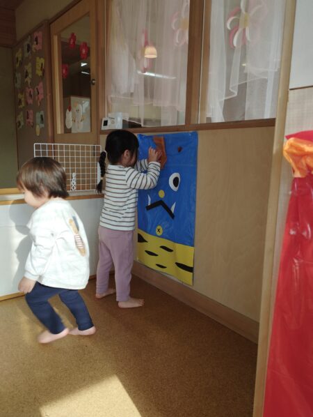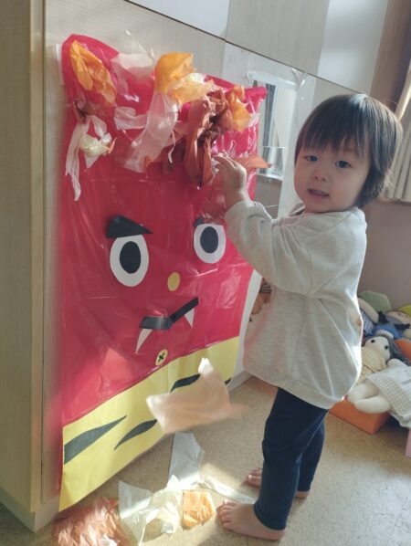 節分へ向けて鬼の製作や豆まきごっこを楽しんでいます。