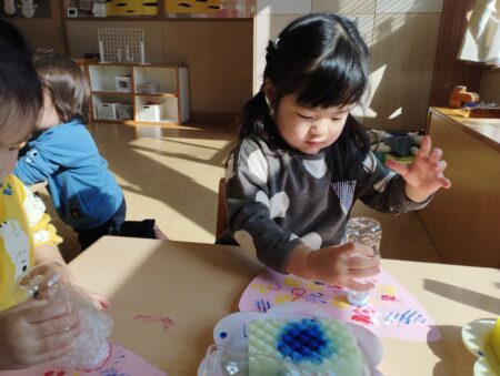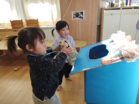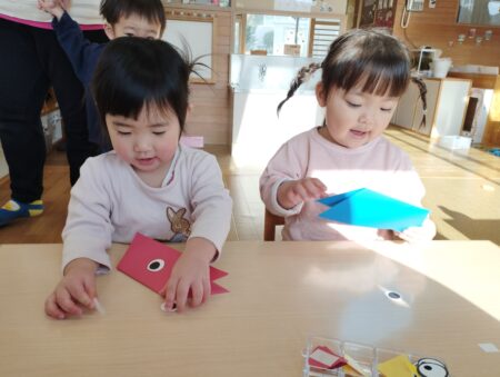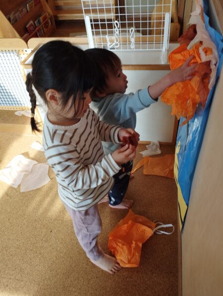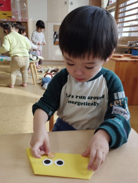 製作では思いおもいに手を動かす事を楽しんでいた姿から”次はこれにしたい!””これはどうしよう”と考えながら楽しむ姿へと変わり