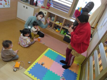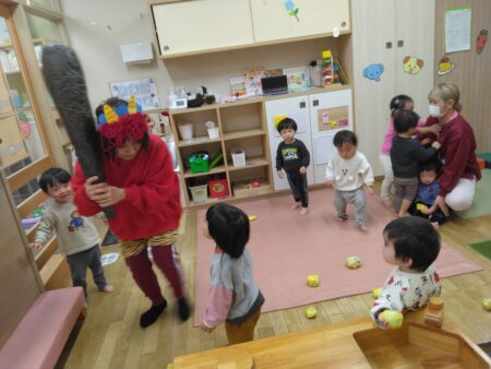 2月3日節分の日には、保育園にも赤鬼が来ました。