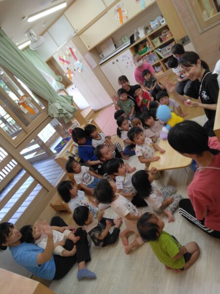 嬉しそうに子ども同士や保育者に見せる子どもたち。