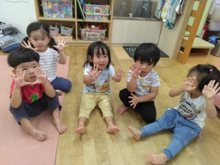 「おくちマスク!」と伝えたり、実際に行ったりする2歳児の子どもたちの姿が!