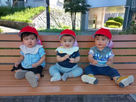0歳児めばえ組も、つかまり立ちやハイハイ、歩行など身体を沢山動かしています。