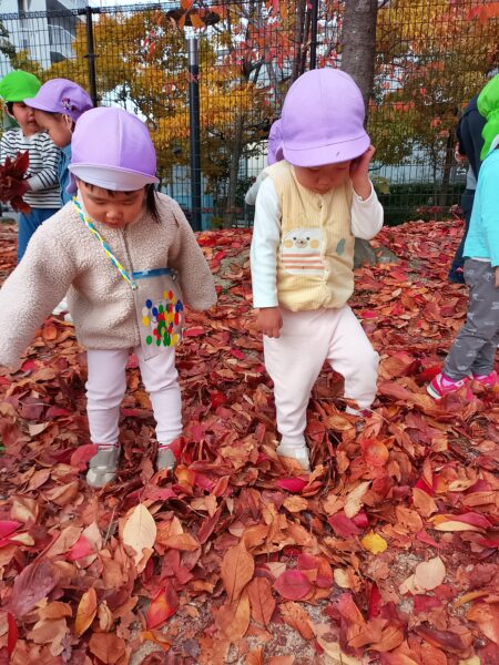 1歳児つぼみ組は、少し肌寒くなってきた頃の公園で、