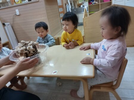 朝に見たきのこが夕方には少し大きくなっており、眼で見てわかり易い食育です。