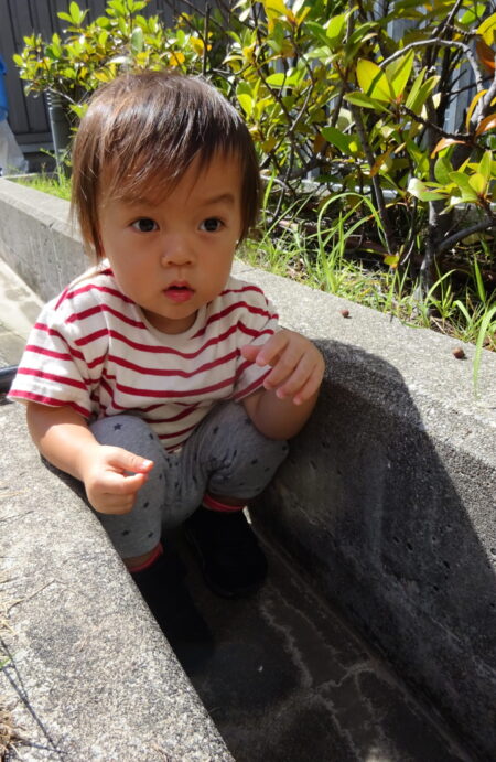 初めは苦手だった砂の感触も、入れたり出したり泥んこにして楽しんでいます。