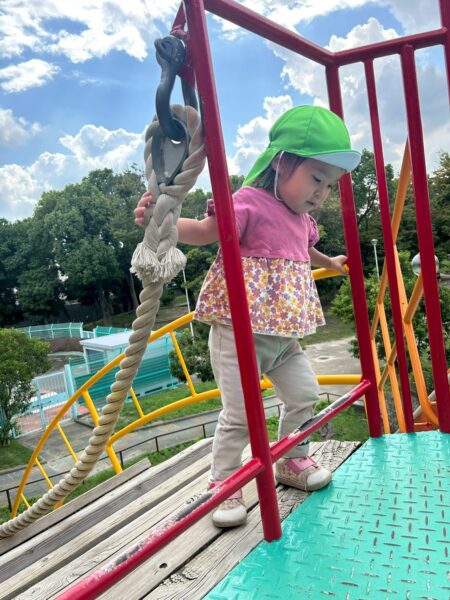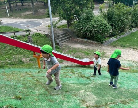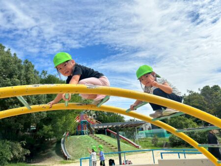 かえで組は体力が付いてきた分、行動範囲を広げて様々な公園に遊びに行っています。先日、轟木公園に行った時の様子を少しご紹介したいと思います。