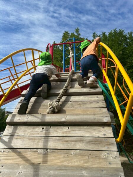 滑り台には数カ所に登る場所がいくつかあり、はしごや階段等、子どもたちは思い思いに自分の好きなところから頂上を目指します。