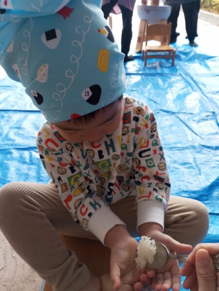 いつものお米とは違う食感をそれぞれ楽しんでいました。